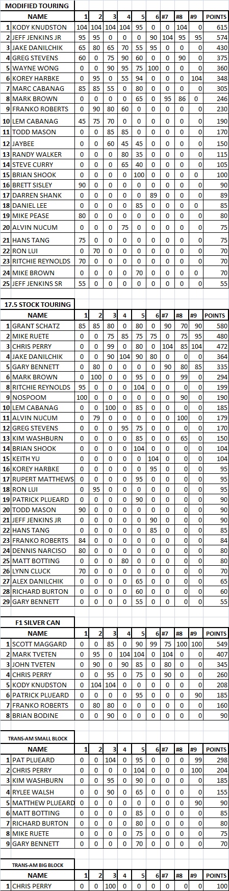 SERIES POINTS 2013
